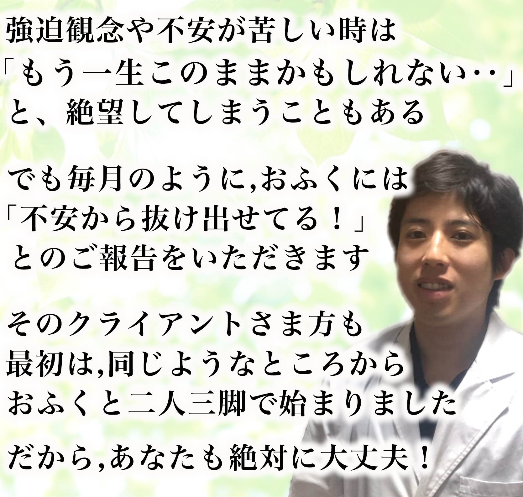 これまで「何を試しても強迫観念が苦しさが消えない」、という方が大多数です。