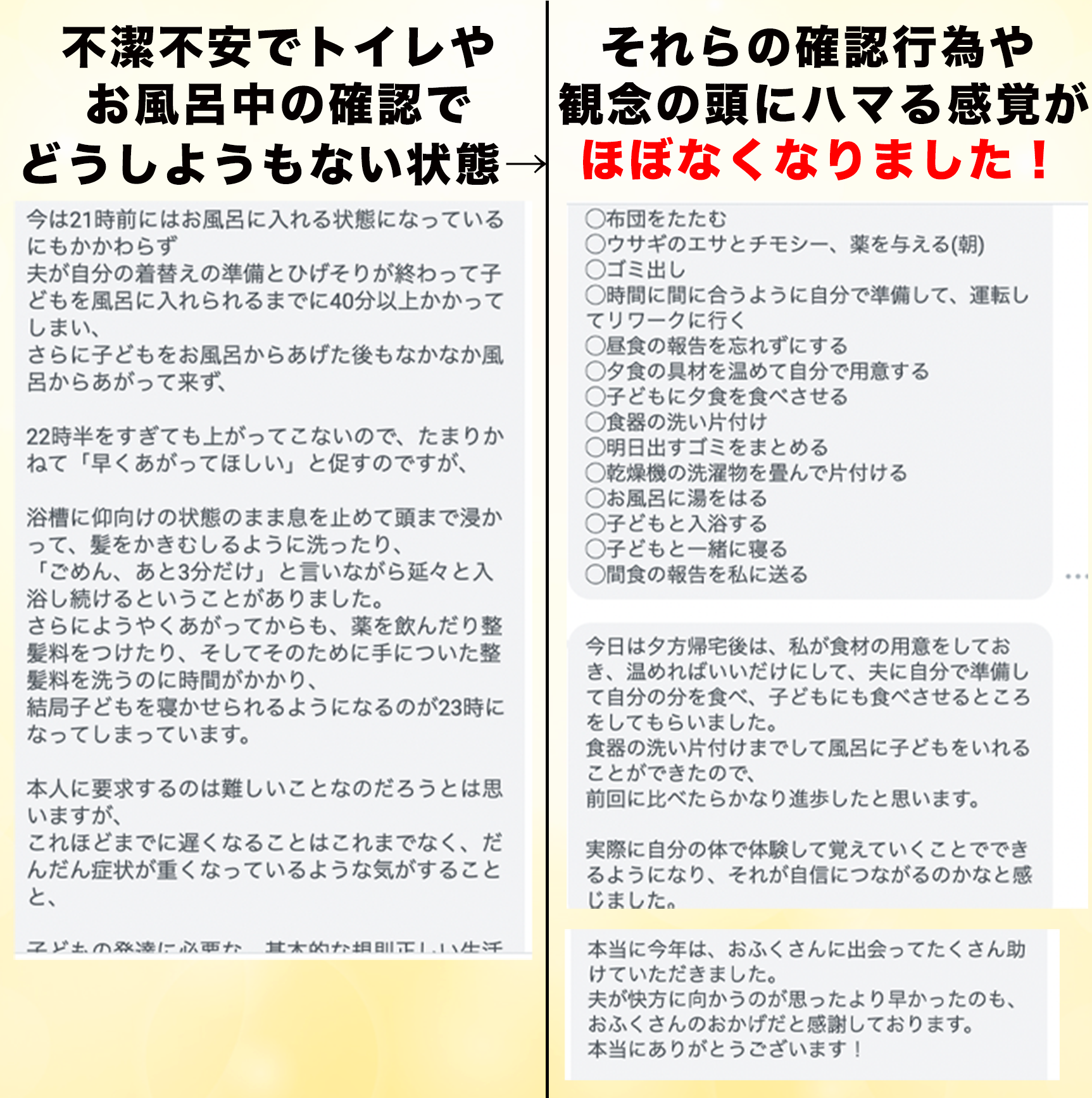 たくさんの強迫観念の泥沼からの解決の報告や声をいただけるのは